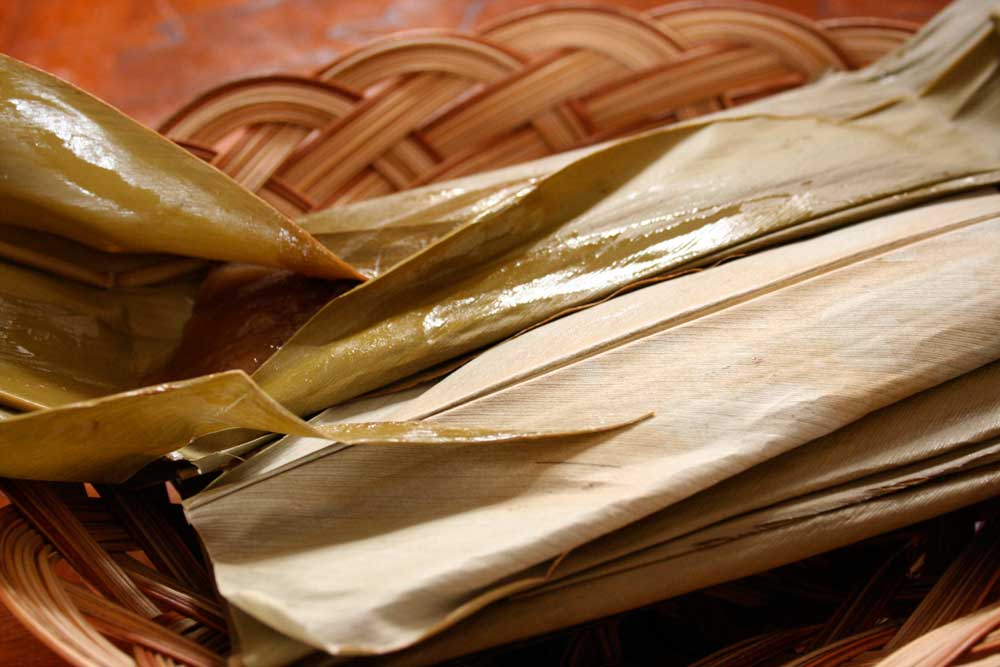 沖縄では、旧暦の12月8日(新暦の1月20日頃) に、月桃の葉に包んで蒸したお餅を、
